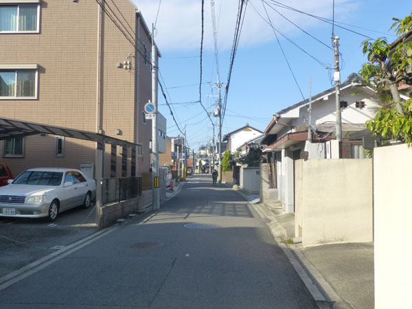 高槻駅付近を過ぎるとすぐに少し込み入った道を曲がり、細い住宅道を歩きます。